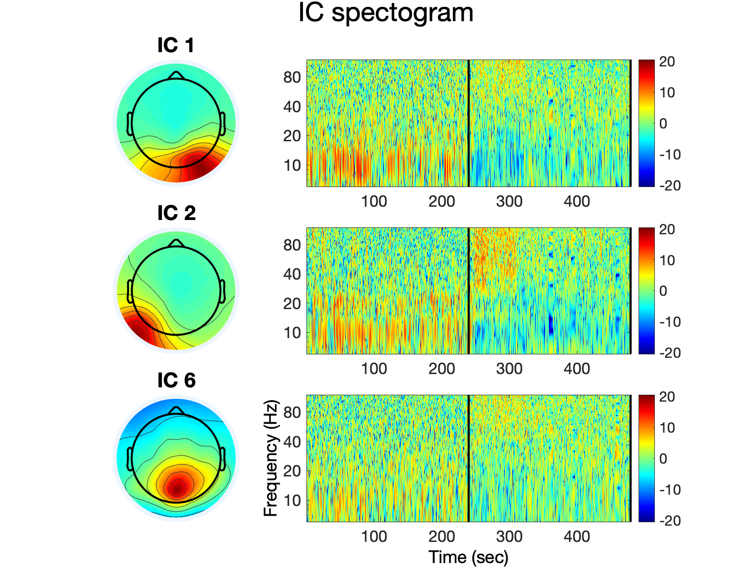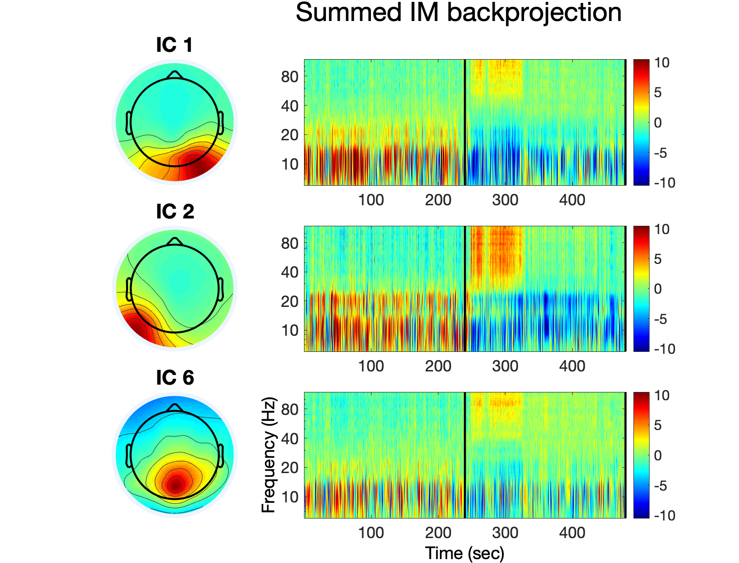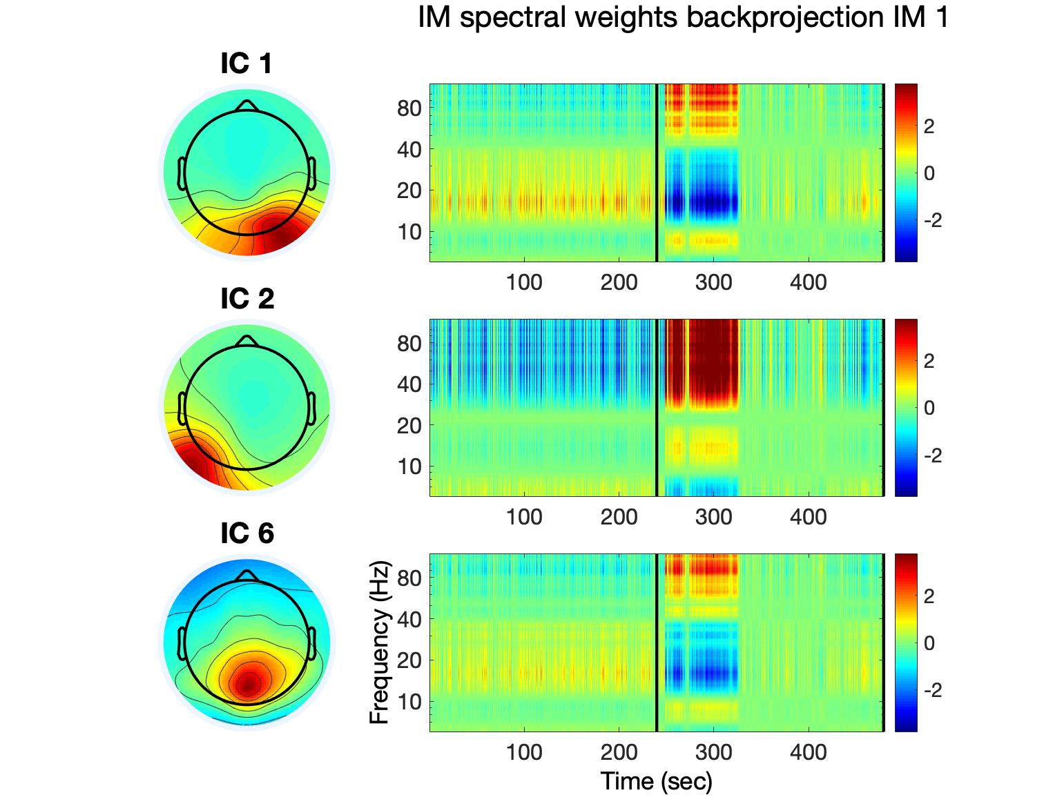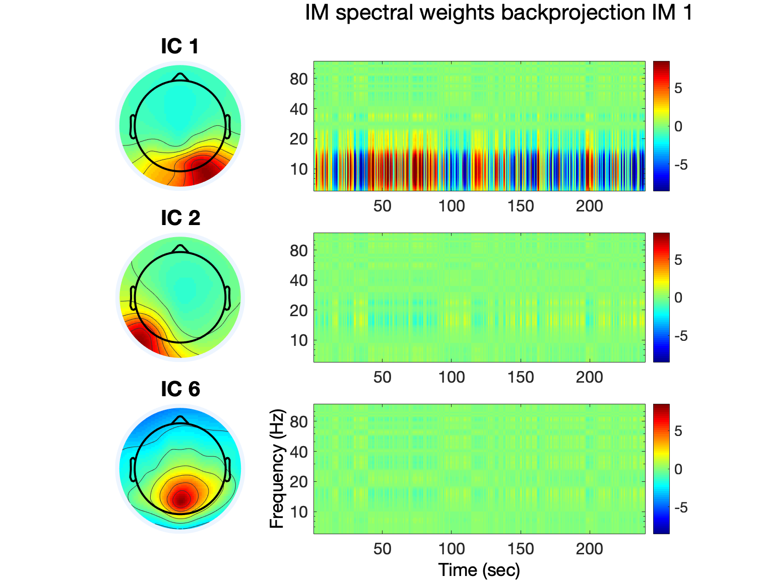 [EEG, IMA] = pop_runIMA(EEG, ‘freqscale’, ‘log’, ‘frqlim’, [6 120], ‘pcfac’, 7, ‘cycles’, [6 0.5], ‘selectICs’, {‘brain’}, ‘icatype’);
