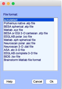 サポートされているデータフォーマットは、readlocs.m 関数のヘルプメッセージに記載されています。サポートされている形式は次のとおりです。