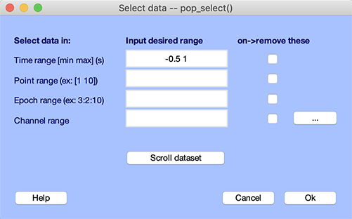 選択する 編集 → エポックやイベントを選択 参照: pop_selectevent.m 関数 を参照してください。 * プレス Ok
