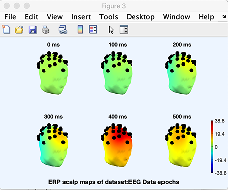 参照: pop_timtopo.m 関数 関数は相対的な時間のコースをプロットします 各レイテンシーでのERP、スカルプポテンシャルの時系列コースをプロットします。 各レイテンシーで1つのスカルプトポグラムを表示し、 all レイテンシーでERPのスカルプマップへ。 ERP映画(例えば、ScalpuのERPの再生)、 関数 eegmovie。 m 点 コマンドラインから記述されている チュートリアルのスクリプトセクション.