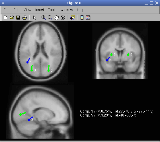 メニュー項目 ツール → DIPFIT → プロットコンポーネントダイポール を選択し、コンポーネント番号3と5を入力します(両方にフィットしたと仮定します) 上記のようにコンポーネント3と5。 以下に示すすべてのオプションを選択します。