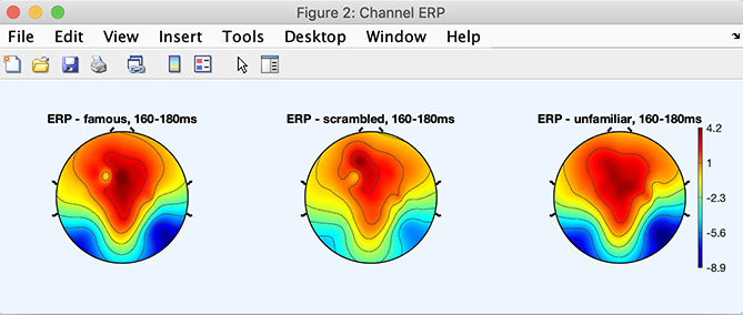 最初にプロットパラメータを変更して、スカルプトポグラフィを170ミリ秒後に作成します(160ミリ〜180ミリ秒間の潜在的な平均)。