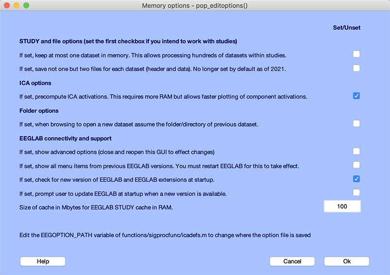 最後のオプションは、EEGLABで作業する際に使用するオプションです。