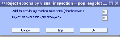 - ここで提示されたすべての機能は、個別に呼び出すこともできます。 メニュー ツール → データエポックの除去 から、またはMATLABコマンドラインから呼び出すことができます。